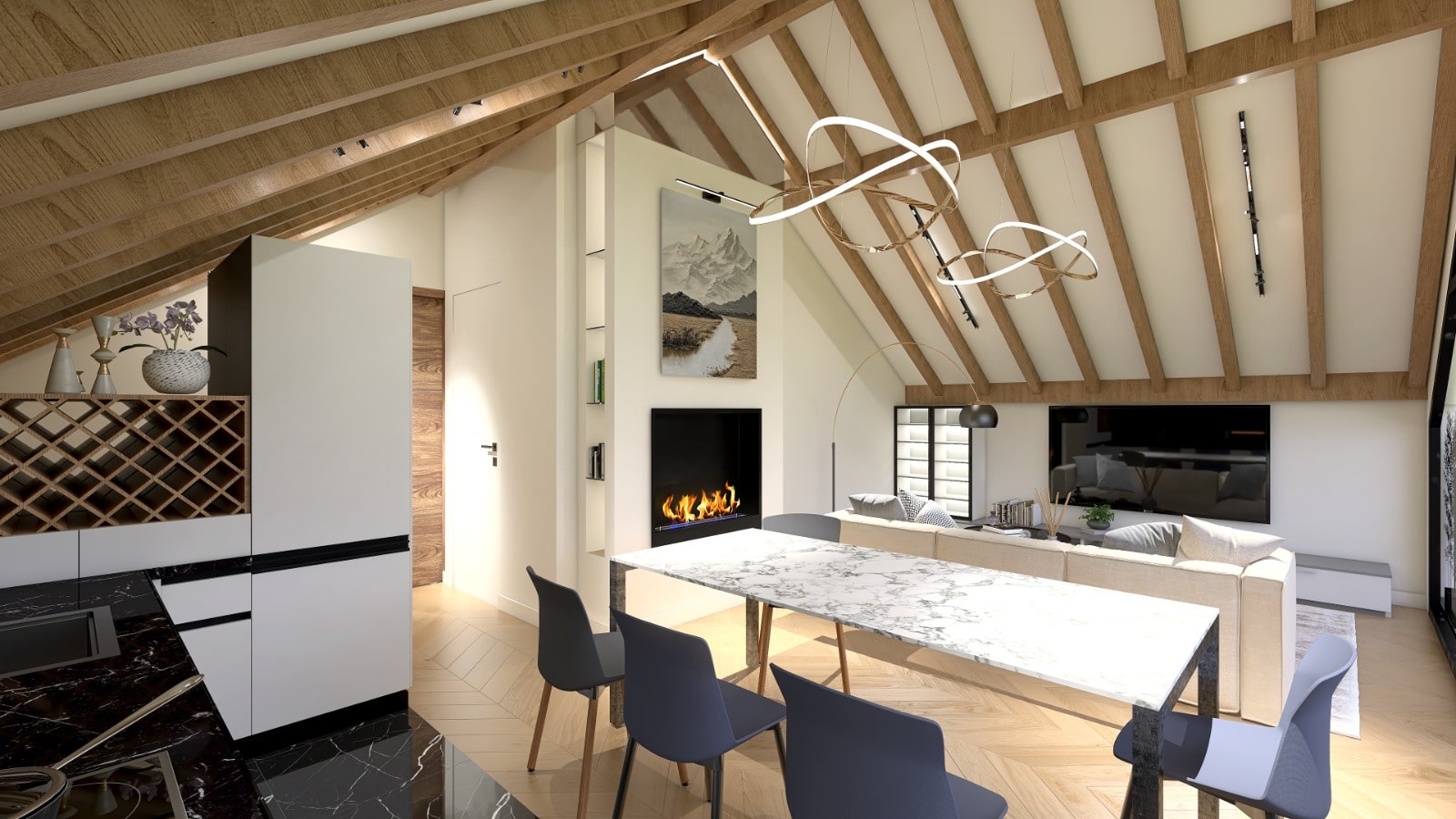 The charming villa features an infinity pool and a terrace area with stunning views, providing residents with a comfortable and relaxing living experience. It also has a bicycle lane and solar panels.