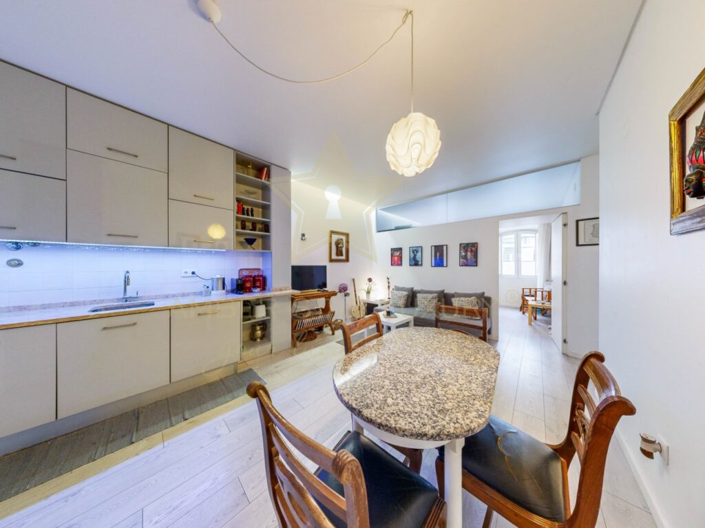 Located in the heart of Lisbon, close to the city’s main tourist attractions, with great access and essential services on the doorstep, this wonderful one-bedroom duplex apartment covers 38m².